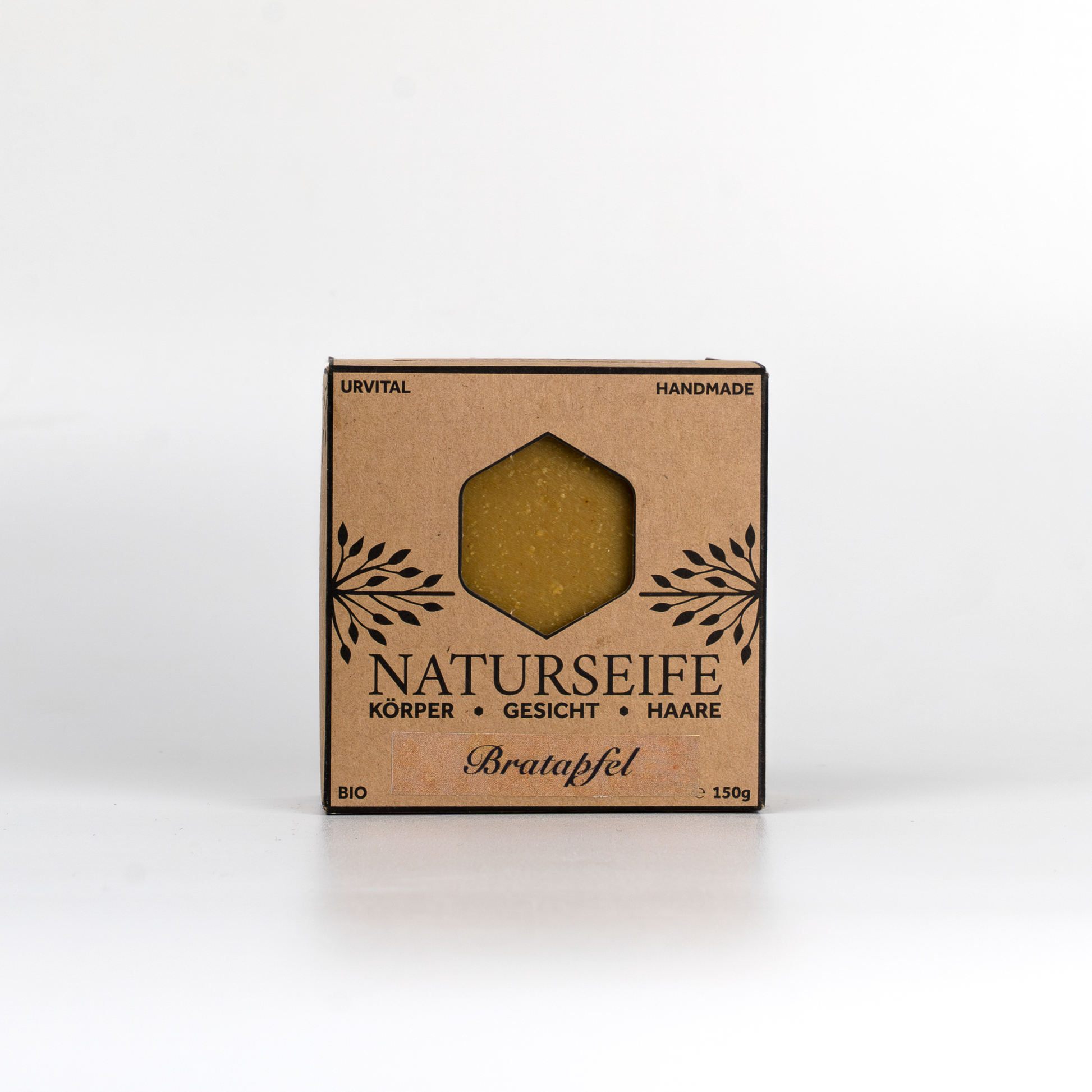 Erlebe pure Entspannung mit unserer Bratapfel Naturseife – handgefertigt aus besten Zutaten für Körper, Haare und Gesicht. Die reichhaltige Rezeptur sorgt für einen cremigen, sanften Schaum und reinigt gründlich, ohne die Haut auszutrocknen. Wertvolle Pflanzenöle mit 9% Rückfettung spenden intensive Feuchtigkeit und hinterlassen ein geschmeidiges, gepflegtes Hautgefühl. Perfekt für alle, die natürliche, vegane und nachhaltige Pflege schätzen.